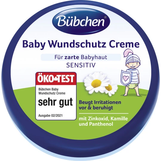Die reichhaltige Formel mit Zinkoxid, Kamille und Panthenol beugt Rötungen und Irritationen vor. Der Nässeschutzkomplex mit Zinkoxid weist wirksam Feuchtigkeit ab. Die Bübchen Baby Wundschutz Creme unterstützt die natürliche Schutzfunktion der Haut. Sie wurde entwickelt, um Allergie-Risiken vorzubeugen. Bübchen wird von Hebammen und Ärzten empfohlen.